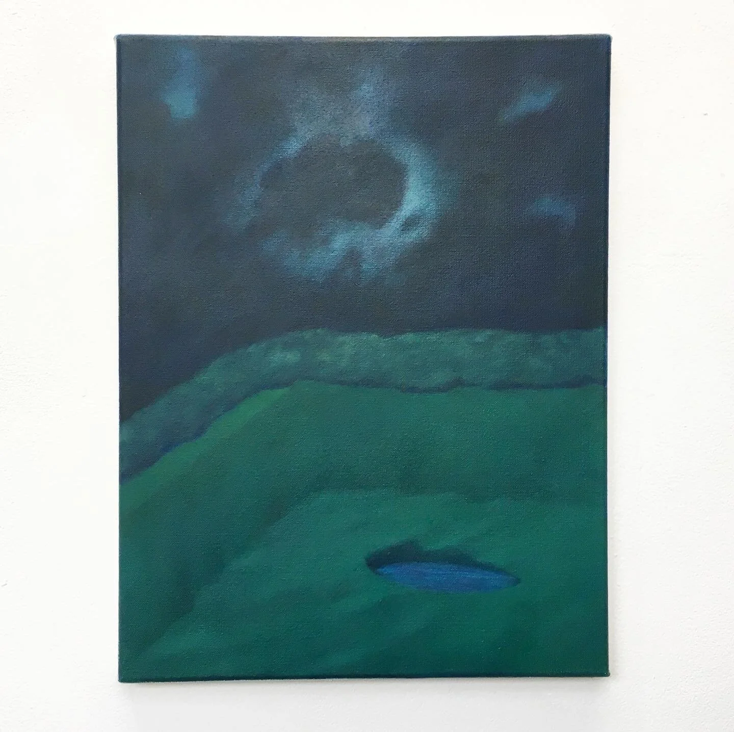 Meredith Hoffheins, "Temporarily Visible," oil on canvas, 13" x 17"